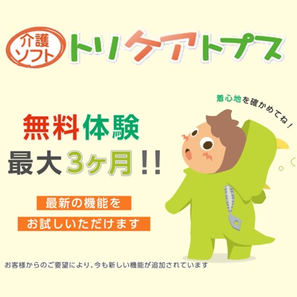 | アピールポイント | 「介護事業の一番身近なパートナー」として介護保険制度施行前から在宅介護事業所様、障害福祉事業所様にご愛顧いただいている「介舟ファミリー」。 計画書類の作成、記録、請求まで一元管理できるので業務効率化を実現!ライセンスフリーで期間しばりのない月額定額制(保守費用込み)なので、安心してご導入いただけます。 |